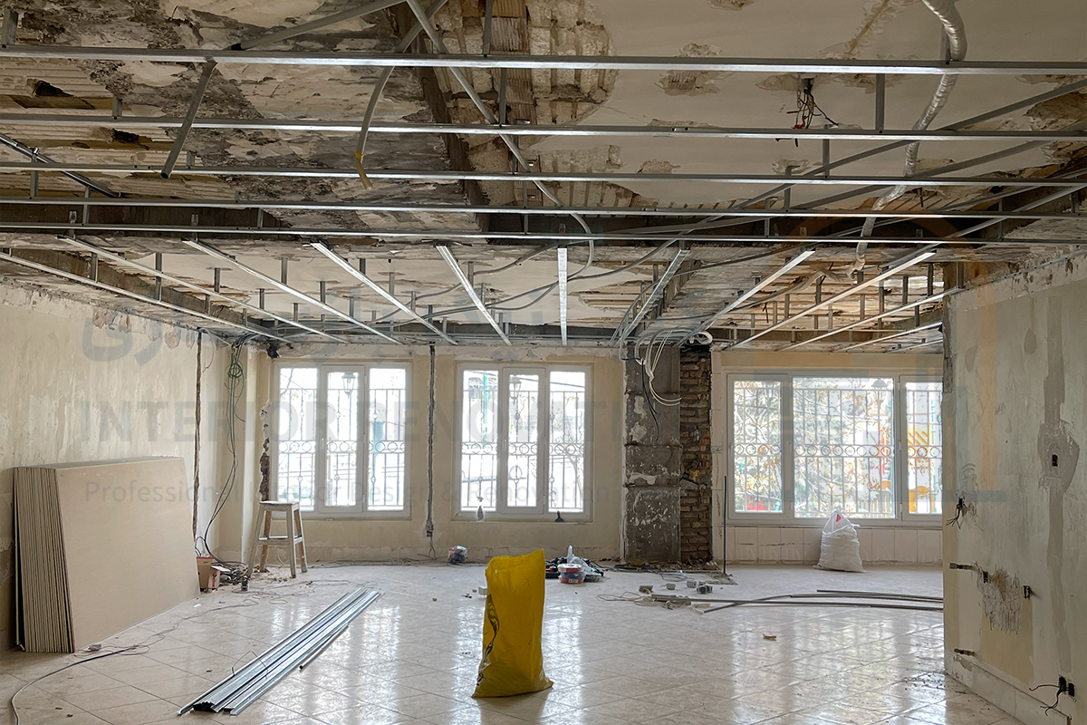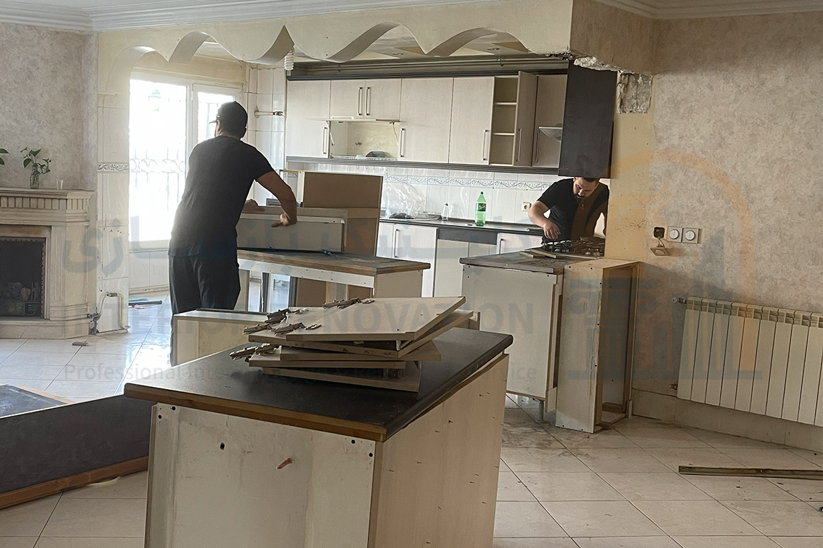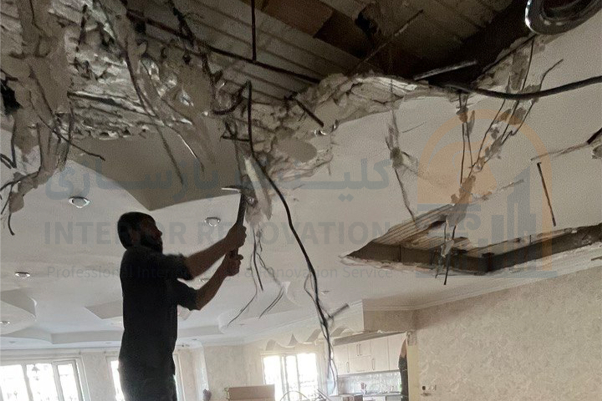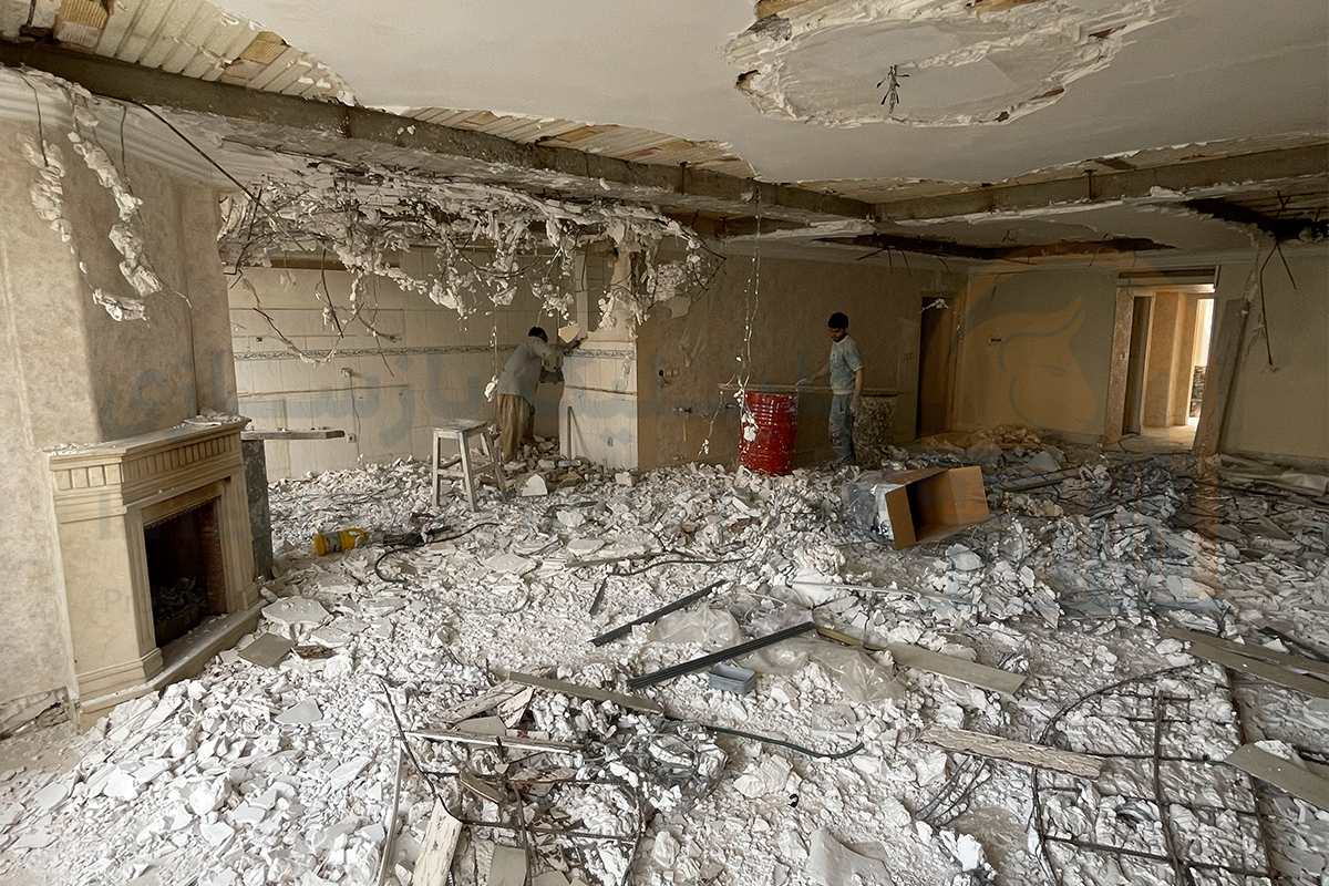 اولین گام در خلق یک فضای نو، حذف عناصر قدیمی و ناکارآمد بود. در این مرحله پس از بازدید اولیه و برداشت دقیق پلان، عملیات تخریب دیوارهای غیرباربر و جمع‌آوری تاسیسات فرسوده با رعایت کامل اصول ایمنی انجام شد تا بستر کار برای طرح جدید آماده شود.