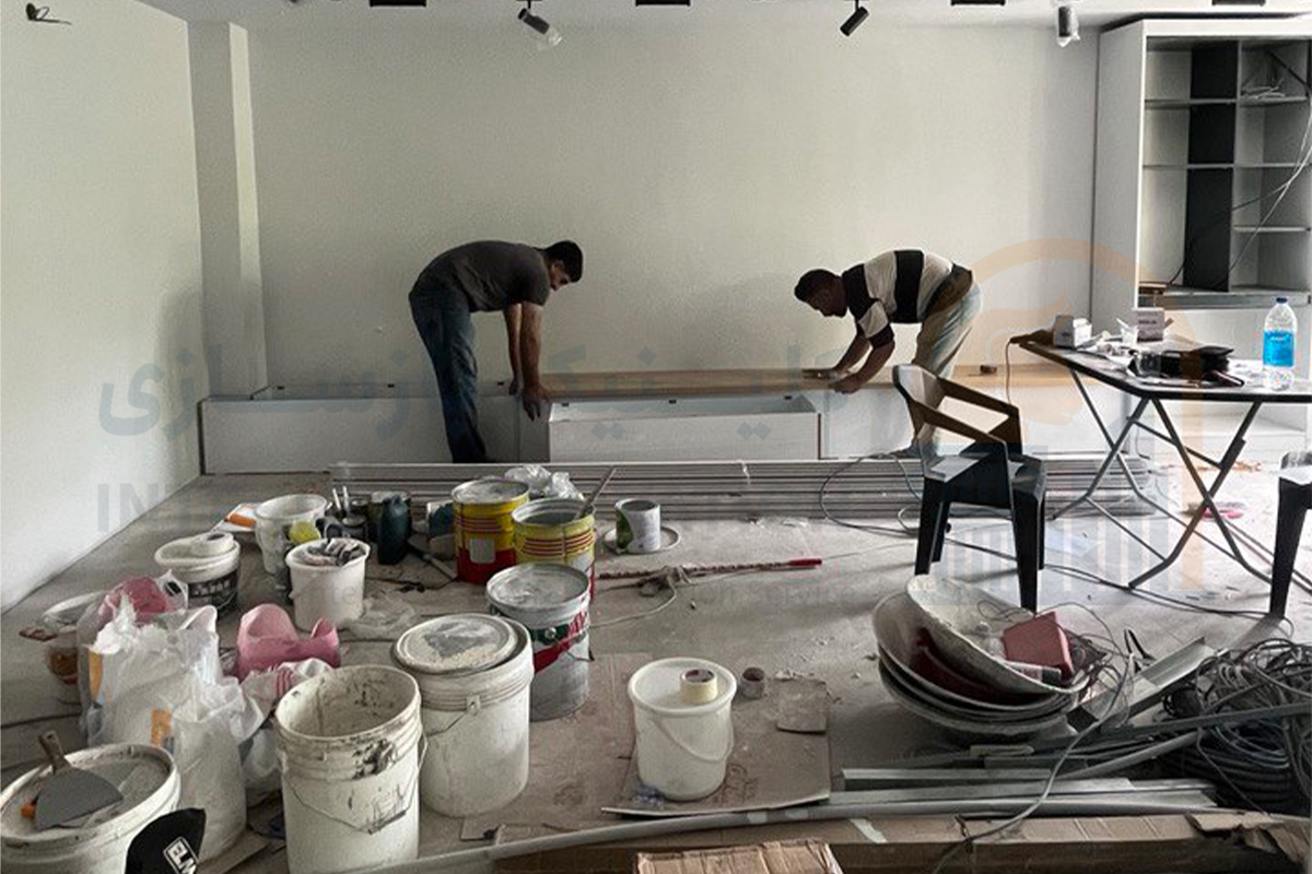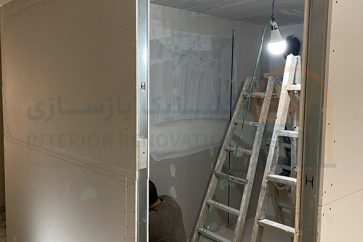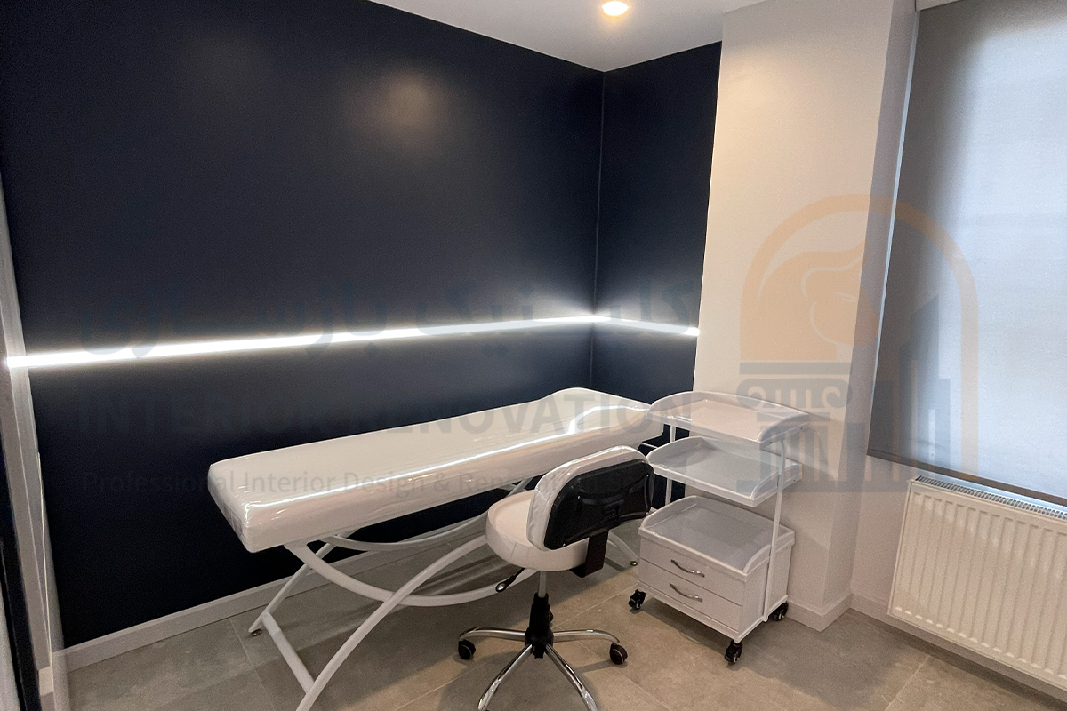 پس از تایید نقشه‌ها، مرحله سفت‌کاری نوین آغاز شد. اجرای دیوارچینی‌ها برای تفکیک اتاق‌های درمان و سالن انتظار، به همراه اجرای سقف کاذب کناف برای ایجاد نورپردازی‌های دکوراتیو و مخفی، ساختار اصلی کلینیک را شکل داد.