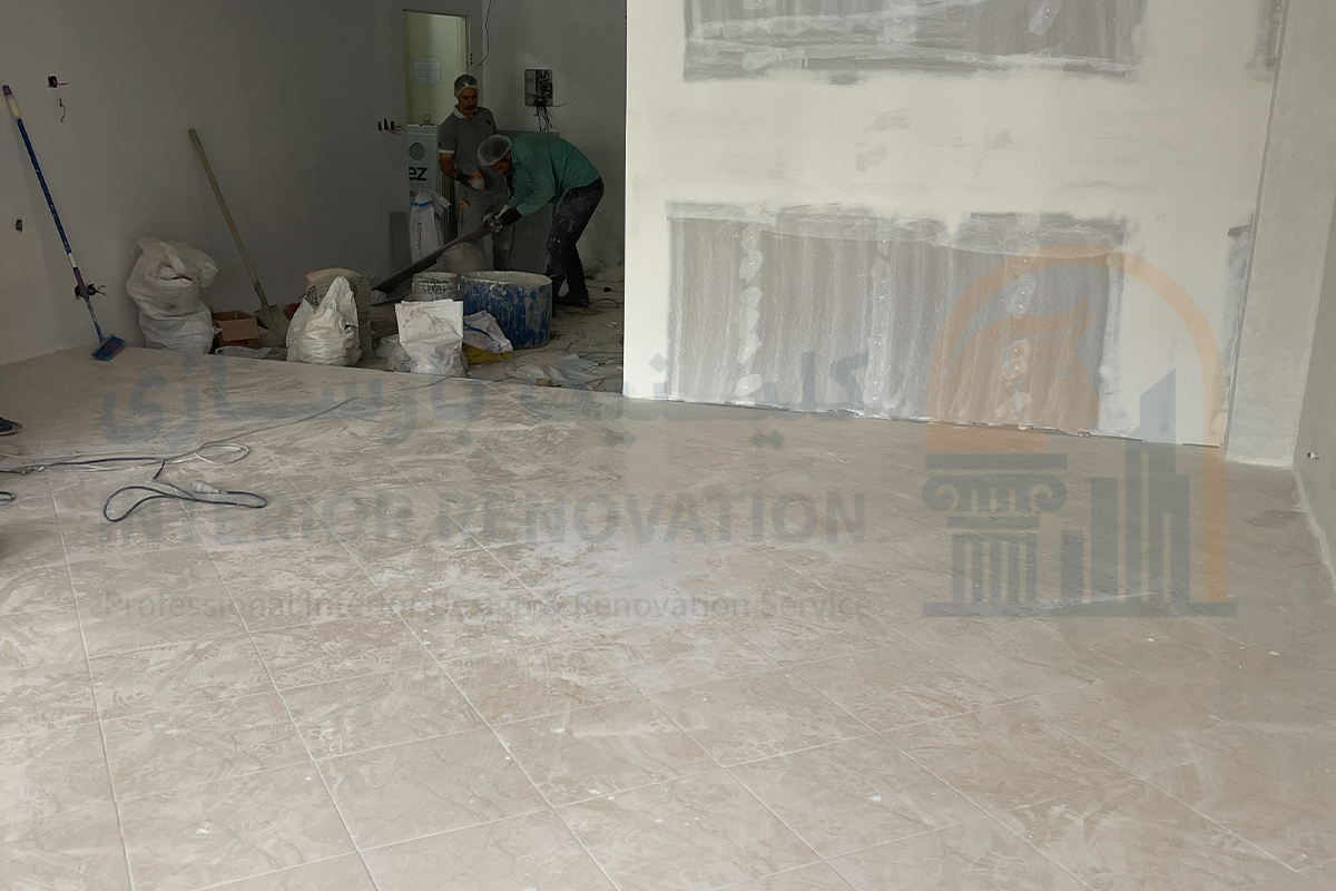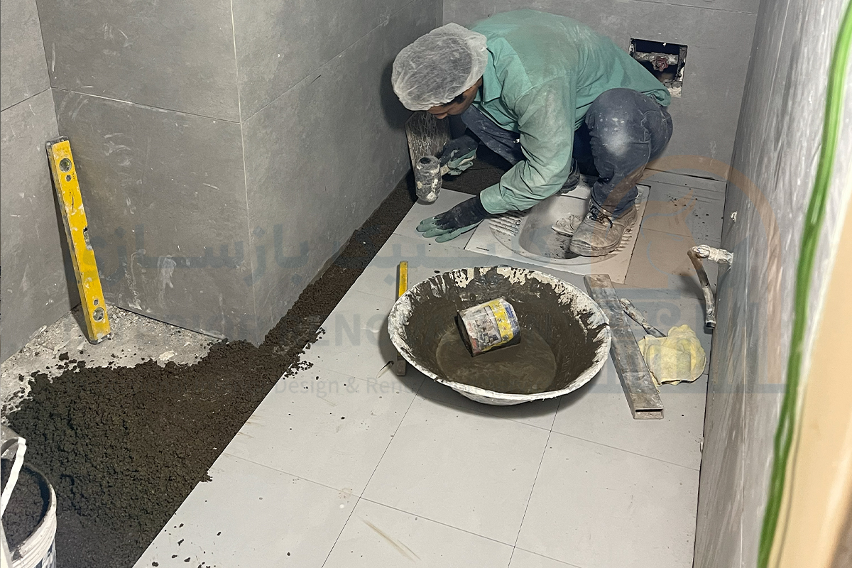 یکی از حساس‌ترین بخش‌های بازسازی کلینیک، اطمینان از سلامت تاسیسات و ایزولاسیون است. در این مرحله، کف‌سازی و آب‌بندی سرویس‌های بهداشتی و اتاق‌های‌ مخصوص که نیاز به شستشو دارند، با بهترین متریال‌ها و تست آب‌بندی دقیق انجام شد.
